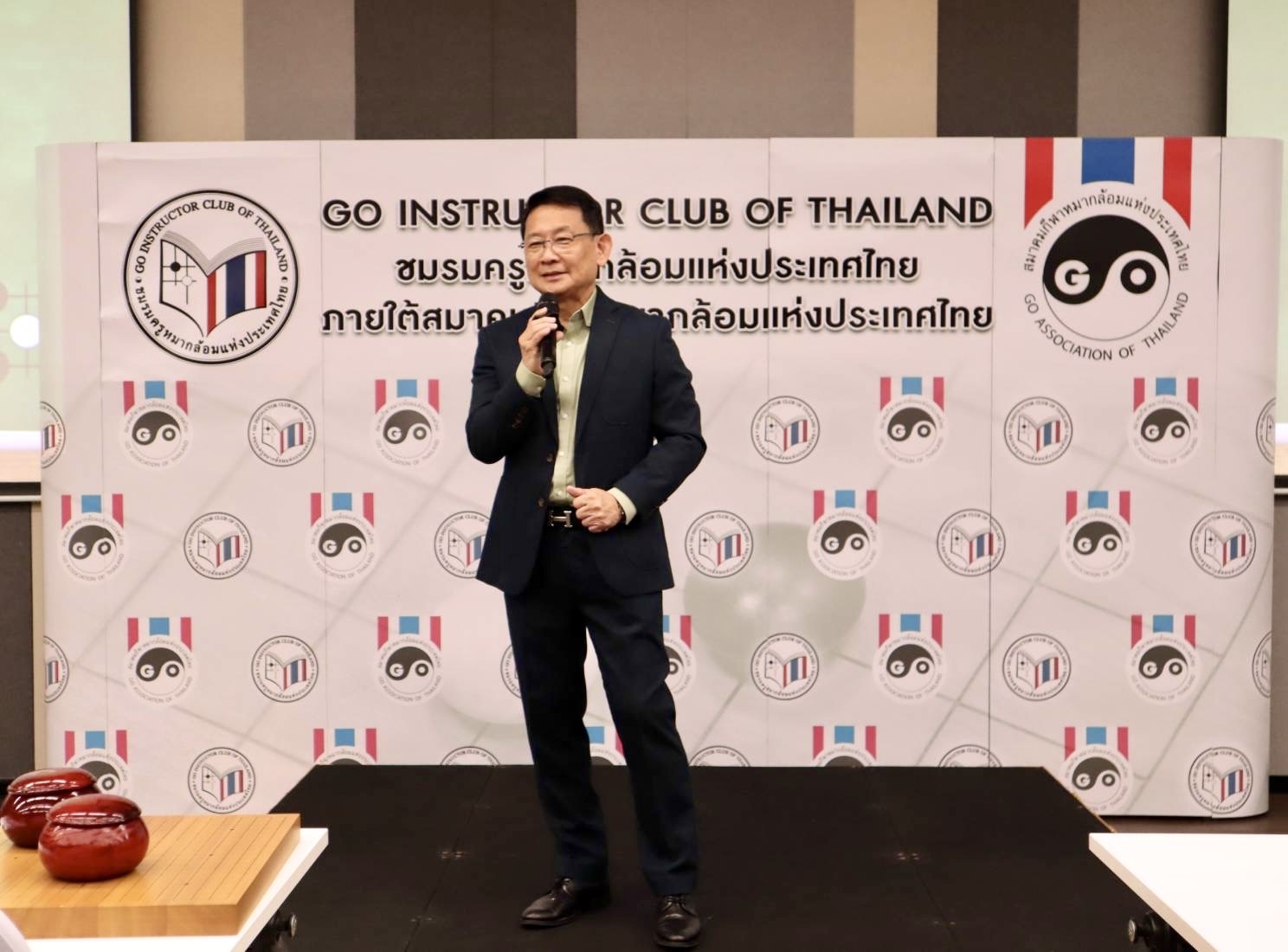 พร้อมเชิญชวนครูหมากล้อม ให้สอน “หมากล้อมเพื่อชีวิต หมากล้อมแบบถ่อมตัวแต่ไม่ตาย” ซึ่งจะทำให้ผู้เล่นหมากล้อมไม่เครียด เข้าใจชีวิตมากขึ้น สิ่งที่จะสอนเป็นเรื่องสำคัญมาก ครูทุกคนอยู่ภายใต้สมาคมกีฬาหมากล้อมแห่งประเทศไทย คำว่าแห่งประเทศไทย มีเกียรติและศักดิ์ศรีมาก พร้อมขอให้ครูทุกท่านภาคภูมิใจที่อยู่ภายใต้สมาคมกีฬาหมากล้อมแห่งประเทศไทย เป็นครูหมากล้อมที่มีเกียรติและศักดิ์ศรี ขอให้ทุกคนโชคดี และประสบความสำเร็จ ใช้ความรู้จากการอบรมหมากล้อม เพื่อพัฒนาคนไทยและหมากล้อมแห่งประเทศไทยต่อไป